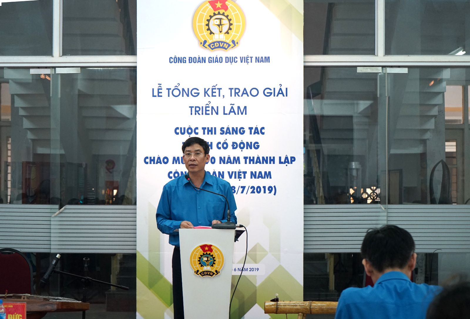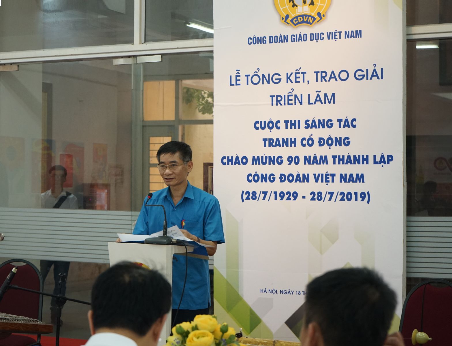 Phát biểu tại buổi Lễ Tổng kết, trao giải và triển lãm, đồng chí Trần Văn Thuật đánh giá cao sáng kiến của CĐGD Việt Nam đã tổ chức Cuộc thi, cũng là đơn vị duy nhất tổ chức cuộc thi vẽ tranh cổ động; là hoạt động có ý nghĩa thiết thực để chào mừng 90 năm thành lập Công đoàn Việt Nam. Cuộc thi tạo cơ hội để CBNGNLĐ trong ngành Giáo dục có dịp thể hiện tài năng sáng tạo, thể hiện những tác phẩm có chất lượng, mang những thông điệp có ý nghĩa tuyên truyền sâu rộng đối với tổ chức công đoàn Việt Nam. Nhân dịp này, đồng chí Trần Văn Thuật đề nghị CĐGD Việt Nam phối hợp với Báo Lao động và các đơn vị truyền thông tổ chức tuyên truyền các tác phẩm có chất lượng; chỉ đạo các đơn vị cơ sở biểu dương, khen thưởng những tác giả tích cực hưởng ứng, tham gia cuộc thi; tiếp tục tuyên truyền sâu hơn, rộng hơn về vai trò, vị thế và trách nhiệm của tổ chức Công đoàn, đặc biệt là công đoàn các đơn vị trường học trong ngành Giáo dục, trong thời điểm những chủ trương đổi mới giáo dục, đào tạo đang được quyết liệt triển khai thực hiện. Cùng với đó là thực thi một số Luật Giáo dục, Luật Giáo dục Đại học sửa đổi, Luật Lao động và những chính sách mới của Đảng, Nhà nước trong quá trình hội nhập, để có những giải pháp nâng cao vai trò của tổ chức Công đoàn các trường học trong việc chăm lo, đại diện, bảo vệ quyền lợi cho người lao động.
