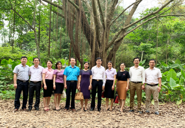 Đoàn kiểm tra tham quan và chụp ảnh lưu niệm tại khu rừng thực nghiệm của Nhà trường