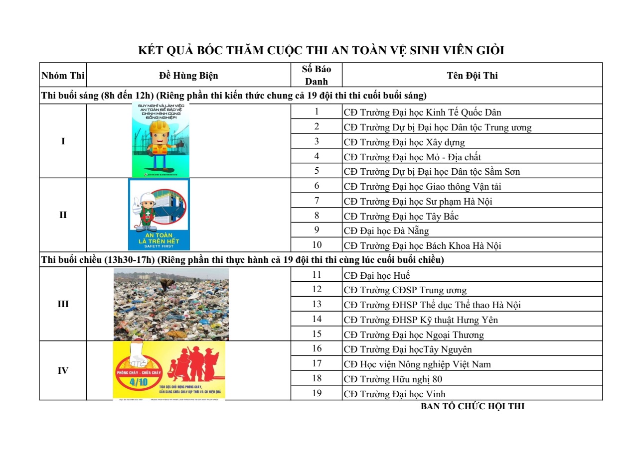 Học viện Nông nghiệp Việt Nam là một trong 19 đội đại diện cho các Trường tham gia Hội thi. Hội thi gồm ba phần: Phần chào hỏi, giới thiệu dưới dạng sân khấu hóa; phần thi kiến thức dưới dạng trắc nghiệm, thi thực hành là chạy tiếp sức cứu người, chữa cháy; phần thi hùng biện với các chủ đề liên quan đến phòng cháy chữa cháy và an toàn vệ sinh lao động.