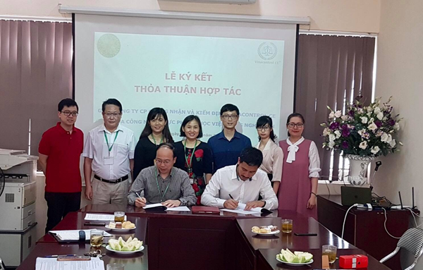 Ông Đỗ Thịnh Thắng - Giám đốc Vinacontrol CE (bên phải) và PGS. TS Nguyễn Hoàng Anh – P. Trưởng khoa Công nghệ Thực phẩm - Học viện Nông nghiệp Việt Nam (bên trái) ký Thỏa thuận hợp tác