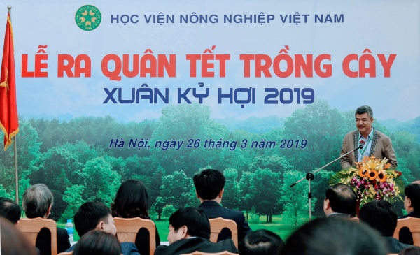 Phát biểu tại buổi lễ, GS.TS. Phạm Văn Cường – Phó Bí thư Đảng ủy, Phó Giám đốc Học viện khẳng định vai trò, ý nghĩa thiết thực, lâu dài và giá trị nhân văn của việc trồng cây, trồng rừng. Thầy nhấn mạnh: Thực hiện lời dạy của Bác Hồ “Mùa xuân là Tết trồng cây, làm cho đất nước càng ngày càng xuân”, suốt 60 năm qua, Tết trồng cây đã trở thành phong tục, nét đẹp văn hóa đầu Xuân, tạo sức lan tỏa sâu rộng ở các cấp, các ngành, cơ quan, đơn vị trên cả nước. Hưởng ứng phong trào, Học viện Nông nghiệp Việt Nam tổ chức Lễ ra quân “Tết trồng cây đời đời nhớ ơn Bác Hồ vĩ đại” với mong muốn truyền tải ý nghĩa, nâng cao ý thức trách nhiệm trong công cuộc bảo vệ môi trường của toàn thể cán bộ, viên chức, người lao động, sinh viên trong Học viện.