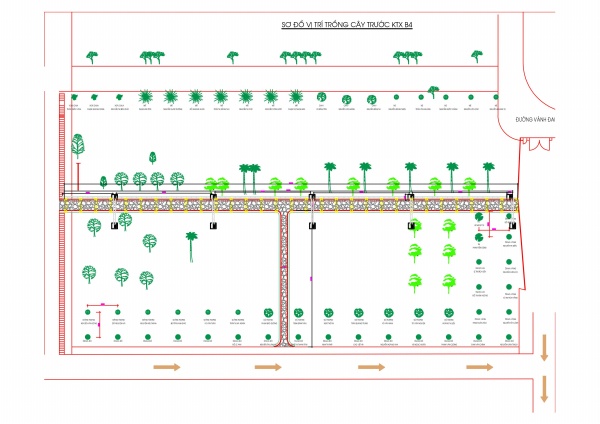 Sơ đồ vị trí trồng cây trước Kí túc xá B4
