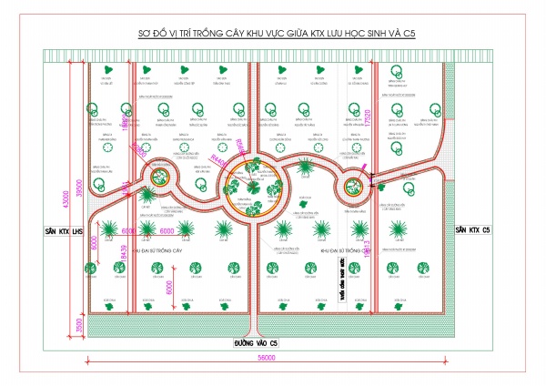Sơ đồ vị trí trồng cây khu vực giữa KTX Lưu học sinh và C5
