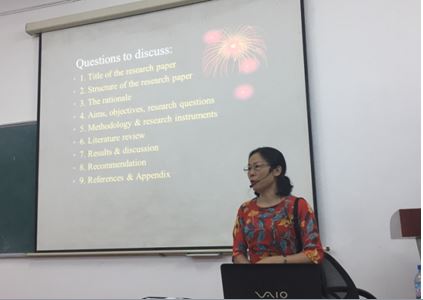 Ngày 21/5/2019, nhóm Nghiên cứu mạnh Ngôn ngữ học ứng dụng Tiếng Anh đã tổ chức seminar với chủ đề “Phương pháp viết bài nghiên cứu Khoa học”. Bài seminar do TS. Nguyễn Thị Thu Thủy trình bày. Tham gia buổi seminar có các giảng viên trong nhóm nghiên cứu mạnh, giảng viên khoa SPNN và các sinh viên ngành Ngôn ngữ Anh.