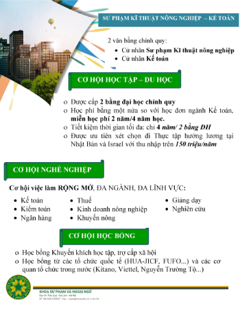 Tìm hiểu về Ngành kép Sư phạm kỹ thuật Nông nghiệp – Kế toán: https://spnn.vnua.edu.vn/tin-tuc-va-su-kien/co-hoi-lam-viec-cua-sinh-vien-tot-nghiep-nganh-kep-su-pham-ky-thuat-nong-nghiep-ke-toan-34063.html